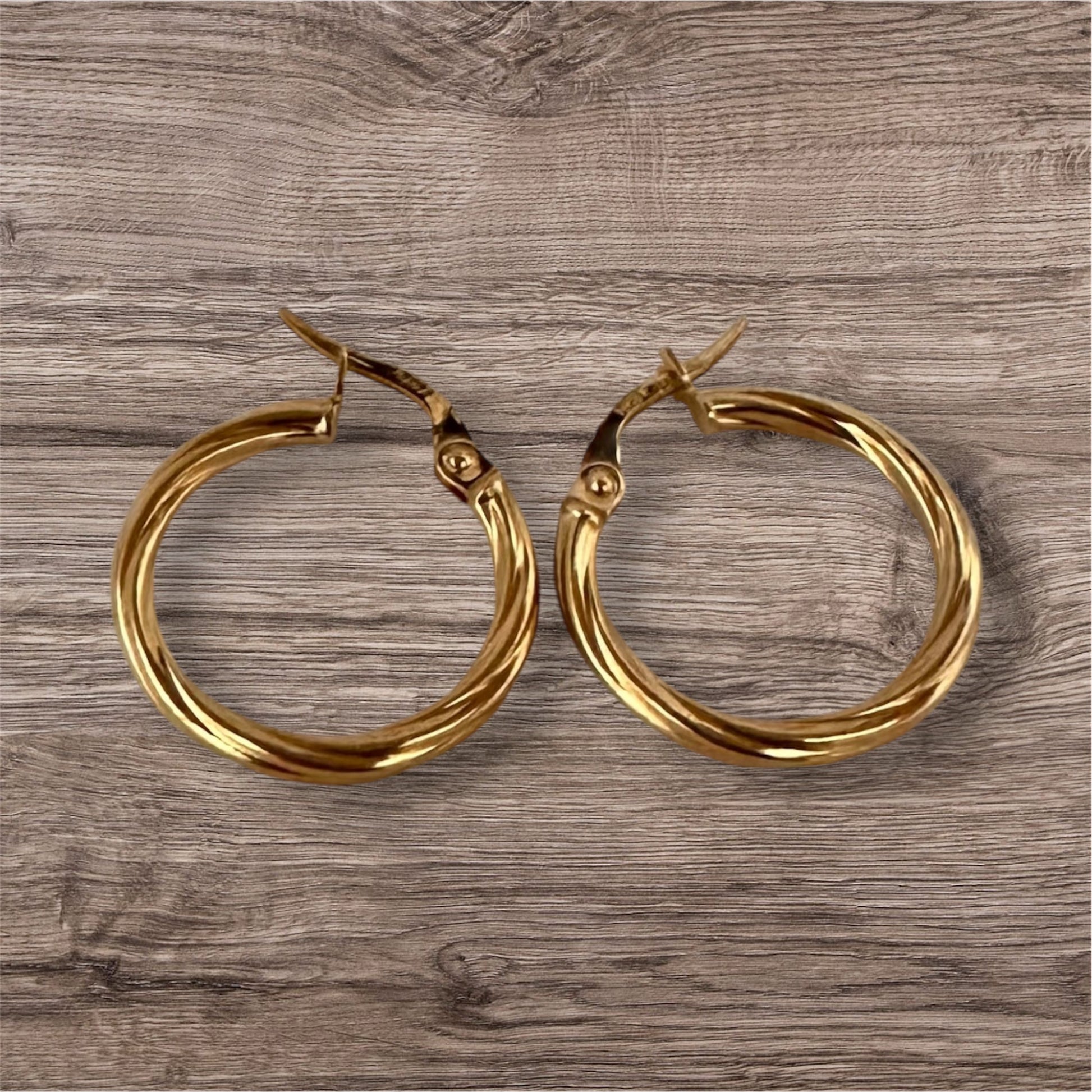 Estas argollas redondas medianas para mujer están elaboradas en oro de 10 quilates, ofreciendo un equilibrio perfecto entre elegancia y durabilidad. Su tamaño mediano las hace ideales para uso diario, aportando un toque sofisticado sin ser demasiado llamativas. La calidad del oro 10k garantiza resistencia al desgaste, manteniendo su brillo y belleza con el tiempo. Un accesorio clásico y versátil que complementa cualquier estilo con distinción.