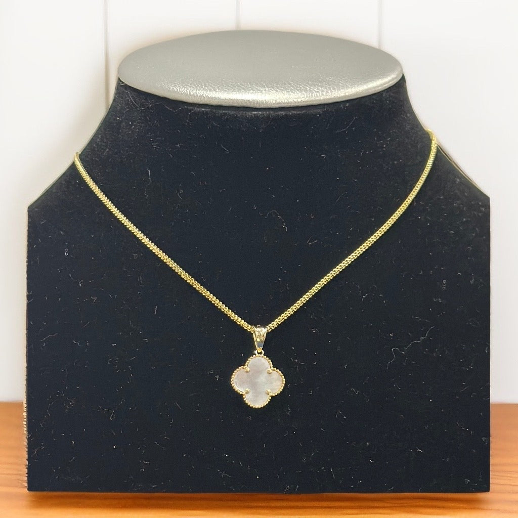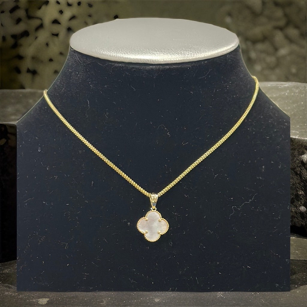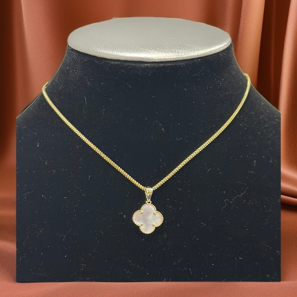 Cadena en oro 10K con un delicado dije de cuatro pétalos que representa armonía y belleza atemporal. Su diseño fino y brillante la convierte en una pieza versátil, ideal para usar sola o combinar con otras cadenas. Un detalle sutil que realza cualquier look con elegancia.