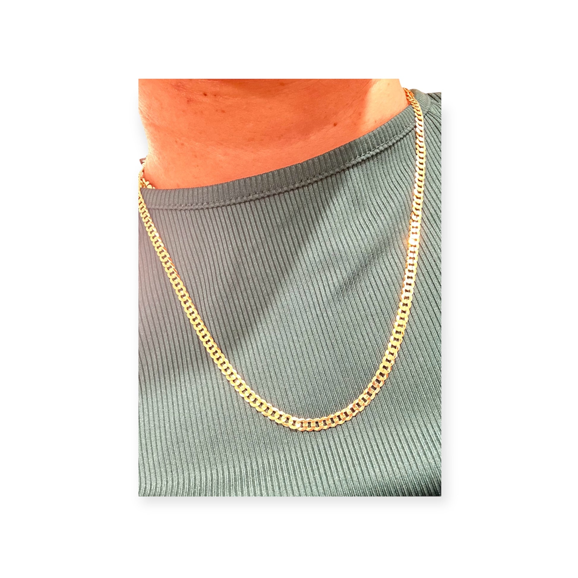 “Cadena en oro 10K que combina brillo, resistencia y estilo atemporal. Su diseño clásico la convierte en una pieza versátil, ideal para usar sola o acompañada de un dije. Perfecta para realzar tu look diario o darle un toque elegante a tus ocasiones especiales.”