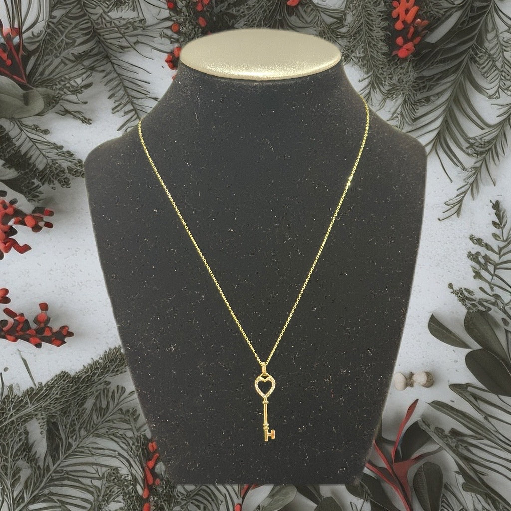 Elegante cadena de oro 10K con dije en forma de llave, una joya llena de significado que simboliza nuevas oportunidades, amor y protección. Su diseño delicado y su acabado brillante la convierten en una pieza ideal para realzar cualquier look, desde el día a día hasta ocasiones especiales.